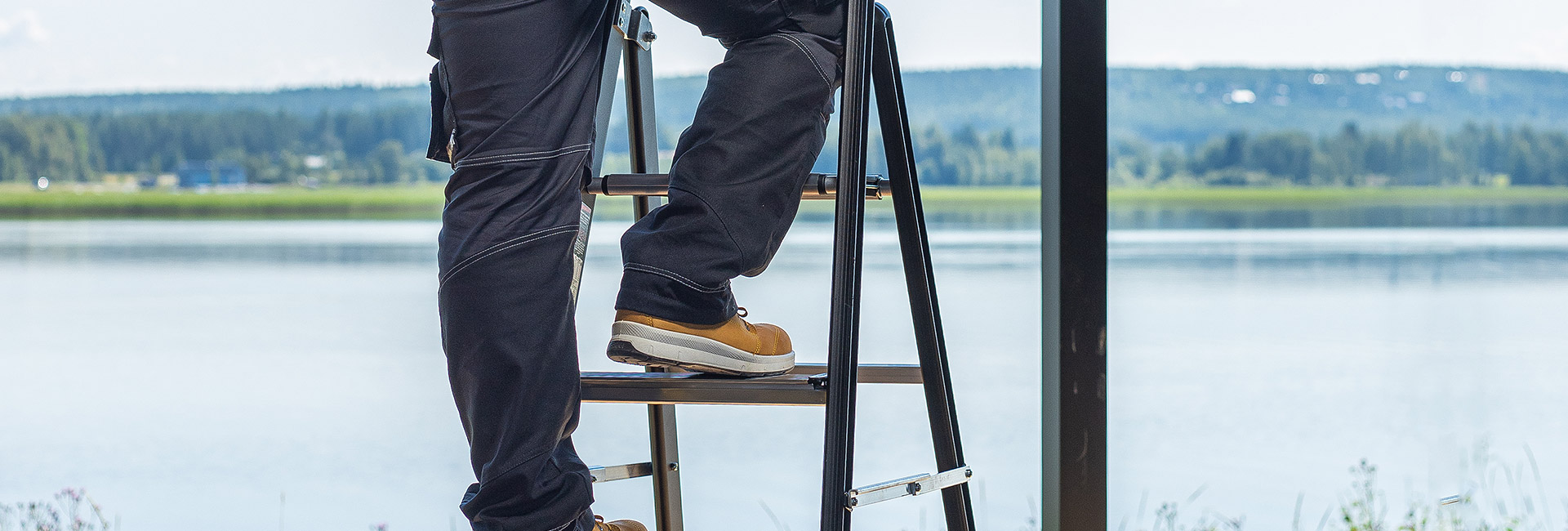 Browse our ladders and scaffolds or check out "Safe work stands and standing ladders" (Confederation of Finnish Construction Industries RT) and products that fill the Government Decree on the Safety of Construction Work (VNa 205/2009).
