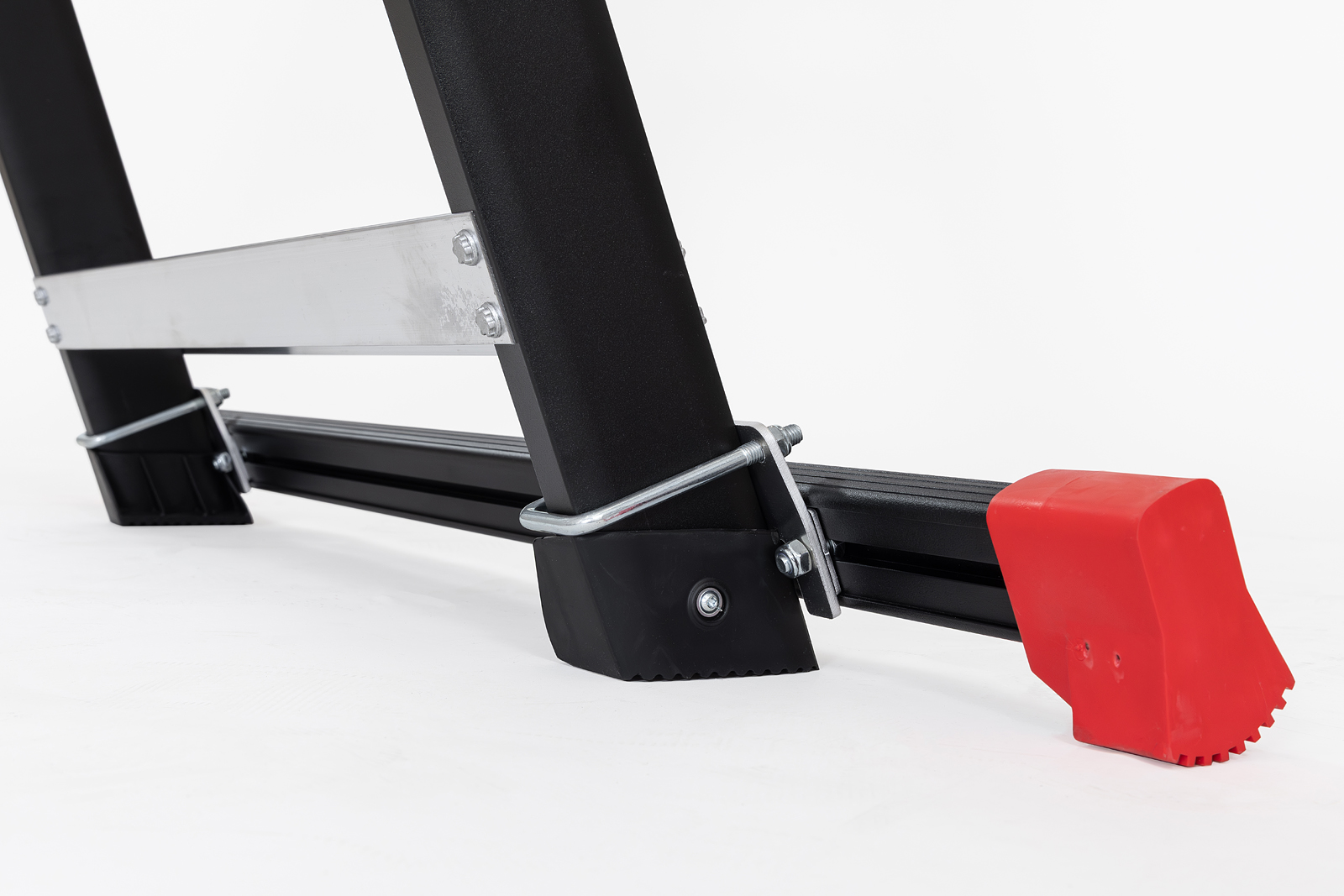 Vakaa ja tasokas ammattitasotikas vaativaan käyttöön. Uritettu, suuri alumiininen seisontataso (400 x 400) mm on suunniteltu soveltumaan myös kookkaammille turvakengille ja niiden käyttäjille tehden pitkäkestoisesta työskentelystä vakaampaa ja miellyttävämpää. Leveät uritetut askelmat on kiinnitetty kestävällä liitostekniikalla FDS- kitkahitsausruuveilla (Flow Drilling Screws). Uusi liitostekniikka takaa rakenteelle pitkän käyttöiän ja yhdessä sivuprofiileiden levenevän harituksen sekä vaakatukien kanssa tasotikas on erittäin vakaa käyttää. Korkea käsituki, tilava alumiininen työkalukotelo sekä ergonominen työskentelyasento lisäävät myös työturvallisuutta. Musta struktuurimaalipinta on siisti käsitellä, ei sotke käsiä. Liukuesteissä on huomioitu erinomainen kitka ja kulutuskestävyys, tassut ovat myös helposti vaihdettavissa.